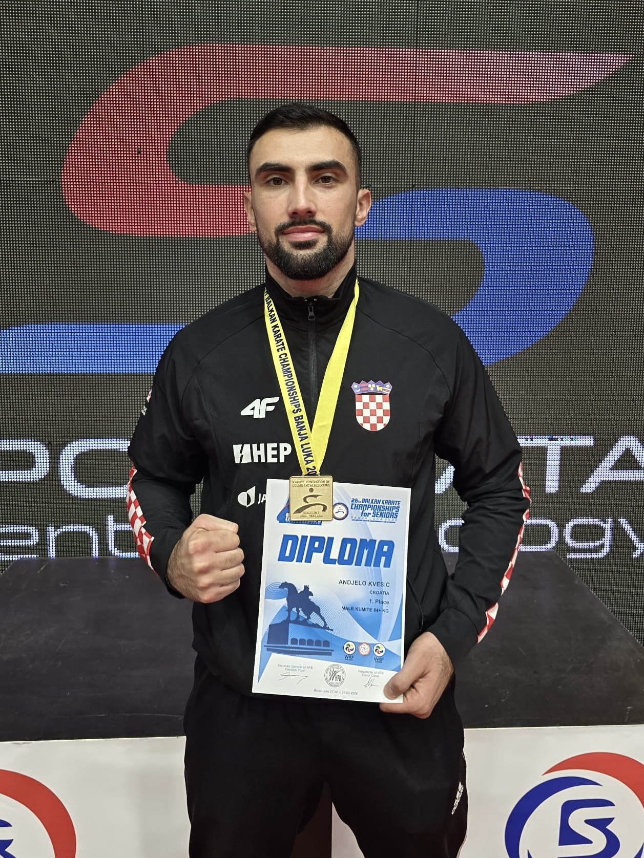 Anđelo Kvesić (+84kg) osvojio je zlatnu medalju. Na putu do zlata Anđelo je upisao pet pobjeda, a u finalnom meču pobijedio je hrvatskog karatistu Enesa Garibovića koji je osvojio srebrnu medalju.