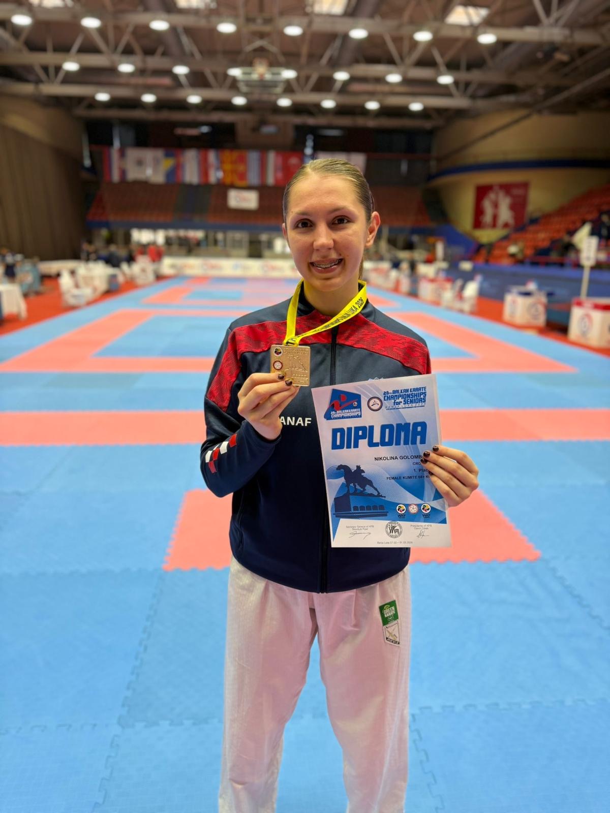 Nikolina Golomboš osvojila je zlatnu medalju na Prvenstvu Balkana u kategoriji +68kg. Dominirala je u četiri meča, a čak tri završila je prije isteka vremena. Brončanu medalju u kategoriji osvojila je hrvatska karatistica Lucija Lesjak.